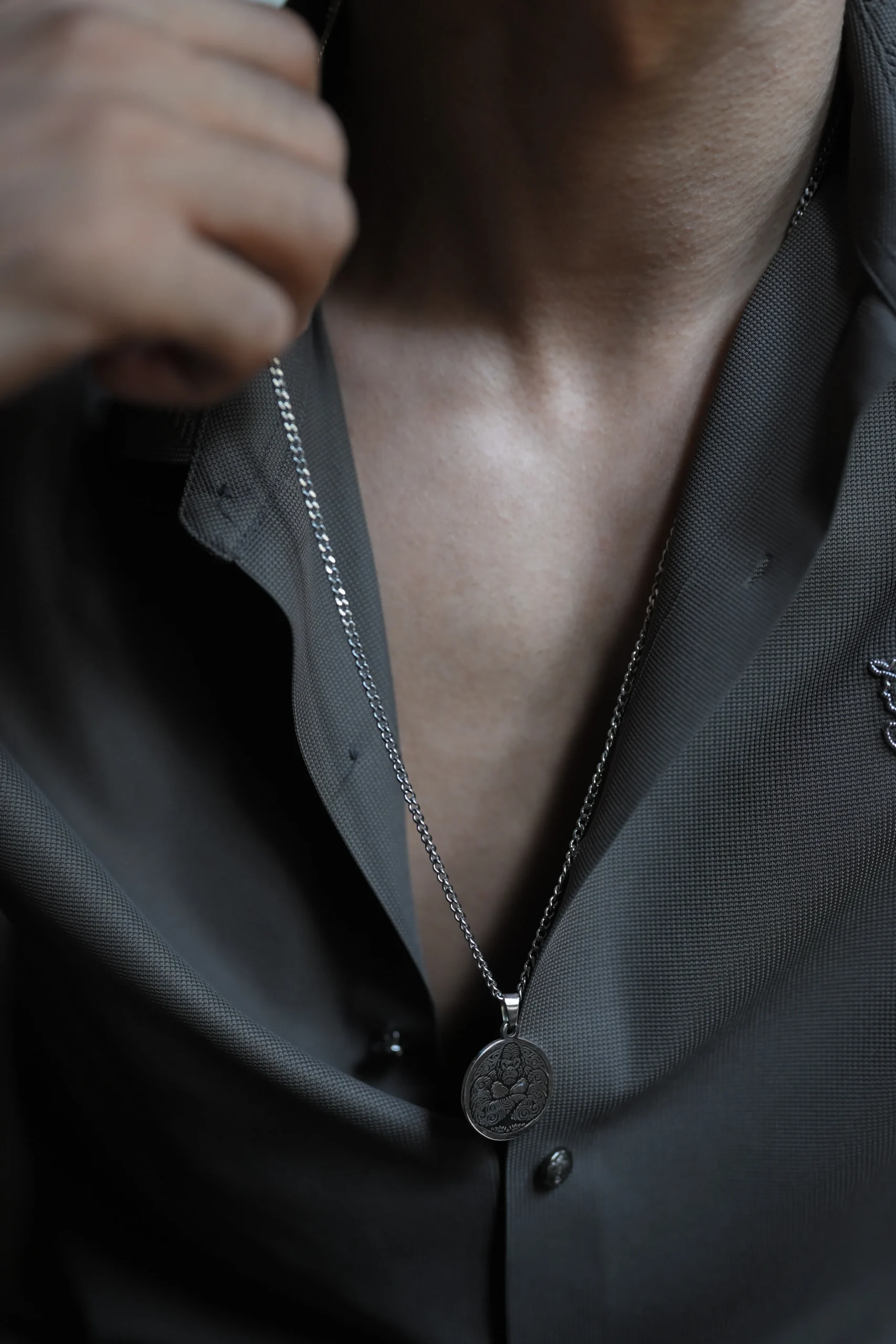 This platinum pendant adds elegance and character to any outfit and reflects strength, style, and confidence.